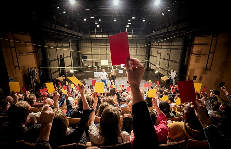Après de nombreuses enquêtes, la compagnie Babel écrit un théâtre documenté tragi-comique ciselé qui questionne notre démocratie. Comment faire assemblée aujourd’hui ? Selon quel mode de prise de décision ?