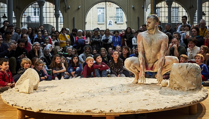 Installez-vous autour de la piste pour retrouver le plaisir de la patouille ! La compagnie de cirque Le Jardin des Délices explore l’utilisation de l’argile et développe un langage sensible et onirique avec la matière. Gadoue est une pièce pleine d’humour pour un clown-jongleur et une harpiste. Sur une petite scène recouverte d’argile blanche, un homme vêtu d’un beau costume complet-veston jongle avec une balle tout en résistant à la glissade. Il exécute des figures de plus en plus complexes et multiplie les risques de dérapages devant un public joyeux et hilare. Et bien entendu, l’inévitable se produit… L’élégant dandy finit dans la gadoue ! Il patauge, s’enduit, modèle… la palette est infinie ! Ce spectacle jouissif déjoue les conventions sociales et replonge aux racines du cirque dans un numéro comique plein d’acrobaties.