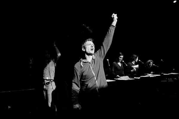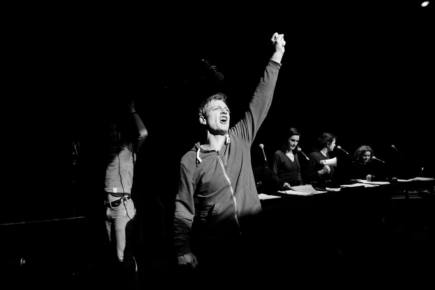 Après la présentation de Beaucoup de bruit pour rien de Shakespeare accueilli en 2023 au théâtre, retrouvons la troupe du Théâtre de l’Argument dans une pièce adaptée de la célèbre BD de Fabrice Caro – Fabcaro –, Zaï Zaï Zaï Zaï. La même complicité joyeuse pour porter cette farce ravageuse et absurde qui porte un regard satirique sur les dysfonctionnements de notre société capitaliste ultra-sécuritaire ! Ou comment devenir l’ennemi public numéro 1 après avoir oublié sa carte de fidélité dans une poche de pantalon… Ici, le spectacle prend la forme d’une fiction radiophonique en public, un dispositif sonore, mené tambour battant, plein d’artifices et de bruitages. Sept comédien·nes et un musicien donnent vie à une quarantaine de personnages, aux actions et aux décors, à l’image et au rythme du road-trip écrit par l’auteur. Ils excellent dans cette partition tonitruante et drôlissime !